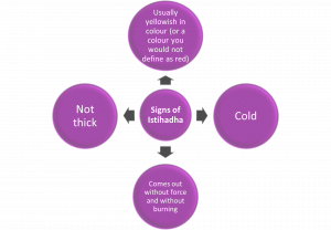 Blood seen at the time of istihadha usually has its own distinctive features: