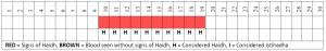Scenario 4: If a woman in the last 2 months has seen blood between the 10th and 18th BUT this month, she saw blood between the 10th and 20th (not including the 20th), then what is her duty? In this situation all 10 days is ‘haidh’, because the flow does not exceed 10 days. This scenario is just like scenario 1.